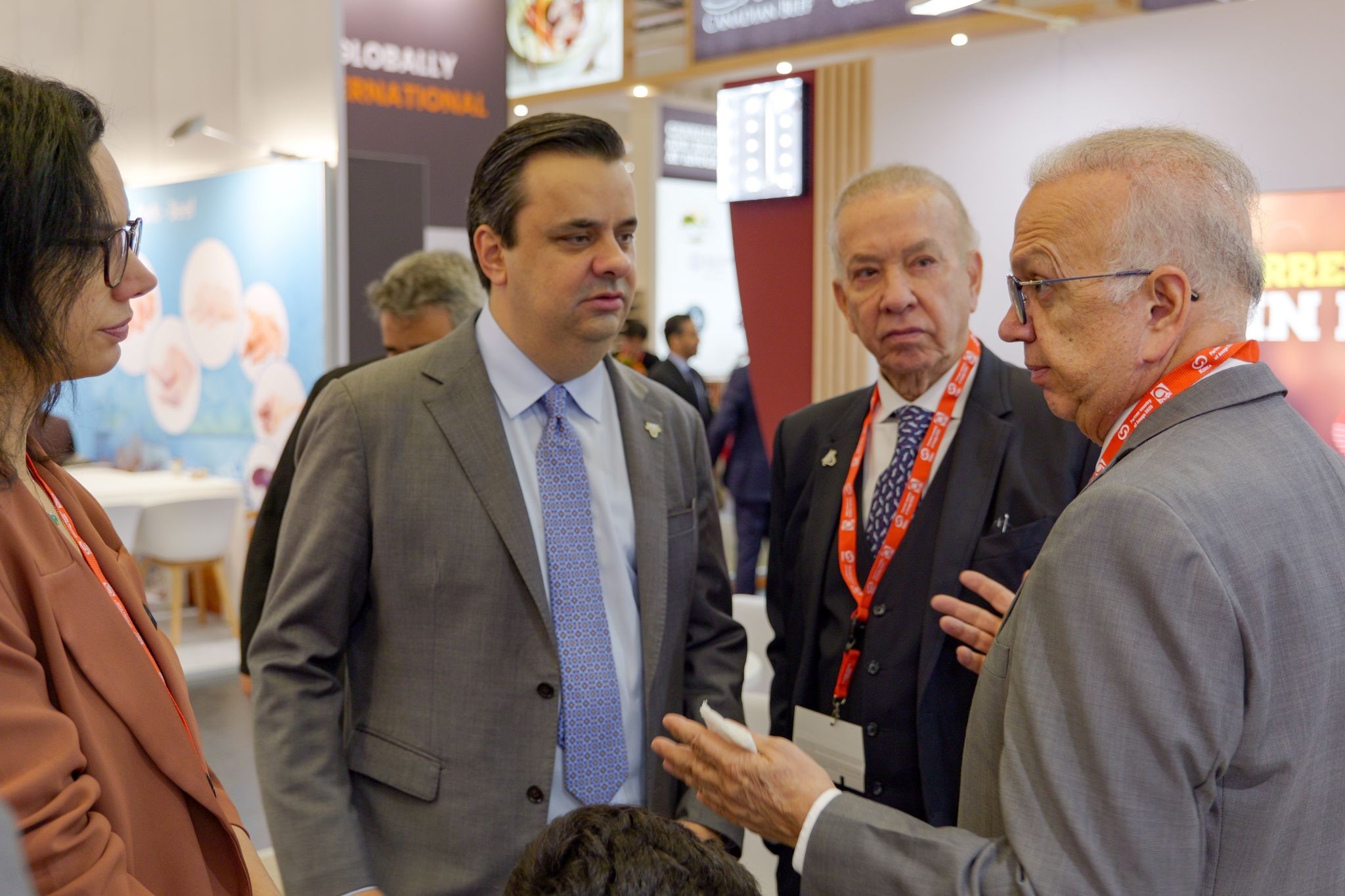 Na ANUGA, uma das maiores feiras de bebidas e alimentos do mundo, a Associação Brasileira das Indústrias Exportadoras de Carne (ABIEC) já consegue avançar em mais tratativas. Roberto Perosa (ao centro), presidente da entidade, participa do evento na Alemanha juntamente com outros representantes e autoridades do Brasil. Foto: Divulgação ABIEC